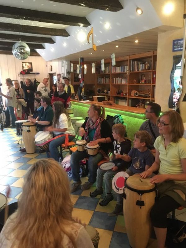 Mit Unterstützung des Fördervereins der Musikschule POWWOW e.V. konnte die in Berlin lebende Perkussionistin und Dipl. Sozialarbeiterin als eine der besten DrumCircle Moderatorinnen Deutschlands für das Event am 01. Juli engagiert werden.